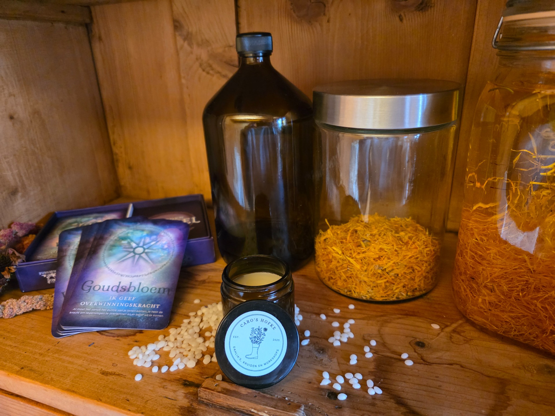 In de voormiddag leren we een basis zalf maken. Na een gezellige lunch verdiepen we ons in een meditatie en orakelkaart. Vanuit jouw intentie maken we een tweede, persoonlijke zalf.
