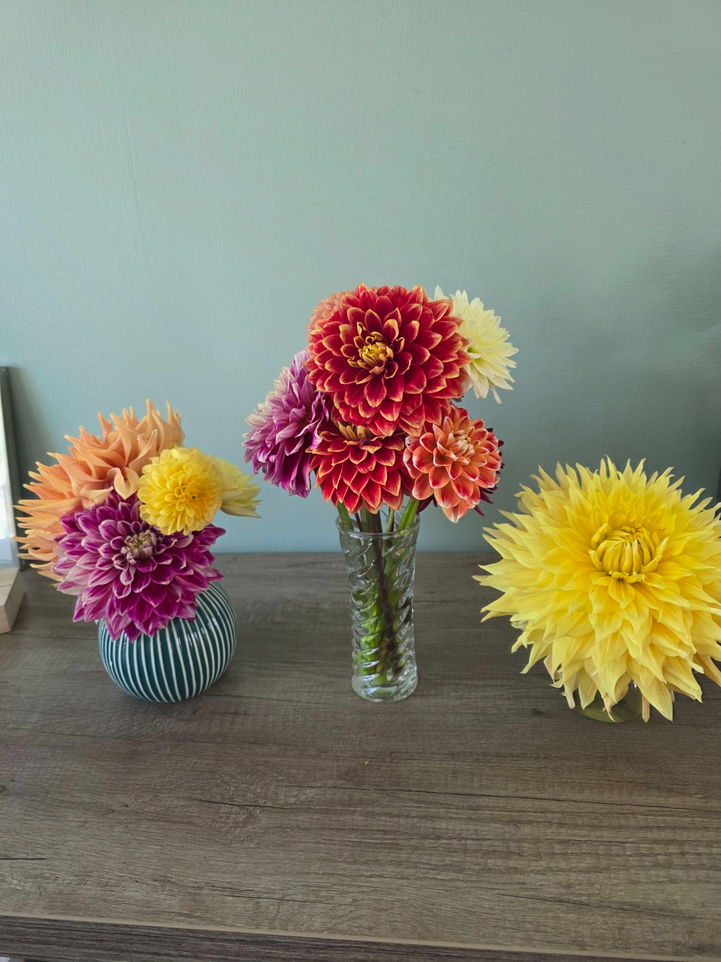 Kom heerlijk genieten van een kleurrijk plukmoment in onze bloeiende dahliatuin.